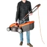 Equipped with central height adjust with 5 different cutting heights (2-6cm) you can achieve a beautifully manicured lawn. The foldable dual lever handles make the mower easy to use and easy to store.